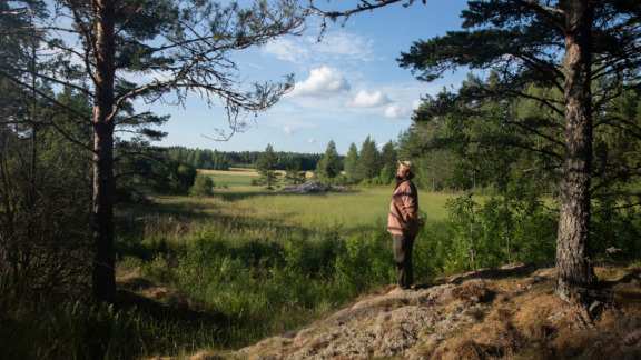 Istahdamme Hasun keittiönpöydän ääreen. Hasu asuu kahden lapsensa kanssa vaaleansinisessä puisessa omakotitalossa, jota kiertää silmänkantamattomiin peltoa. Pihalta voi tähystellä muutaman sadan metrin päässä laiduntavaa hereford- ja angus-rotuista karjaa. Niiden ympäri kulkee kilometrien pituinen sähkölanka-aita. Neljänsadan metrin päässä virtaa Kymijoki, vanha valtakunnan raja.